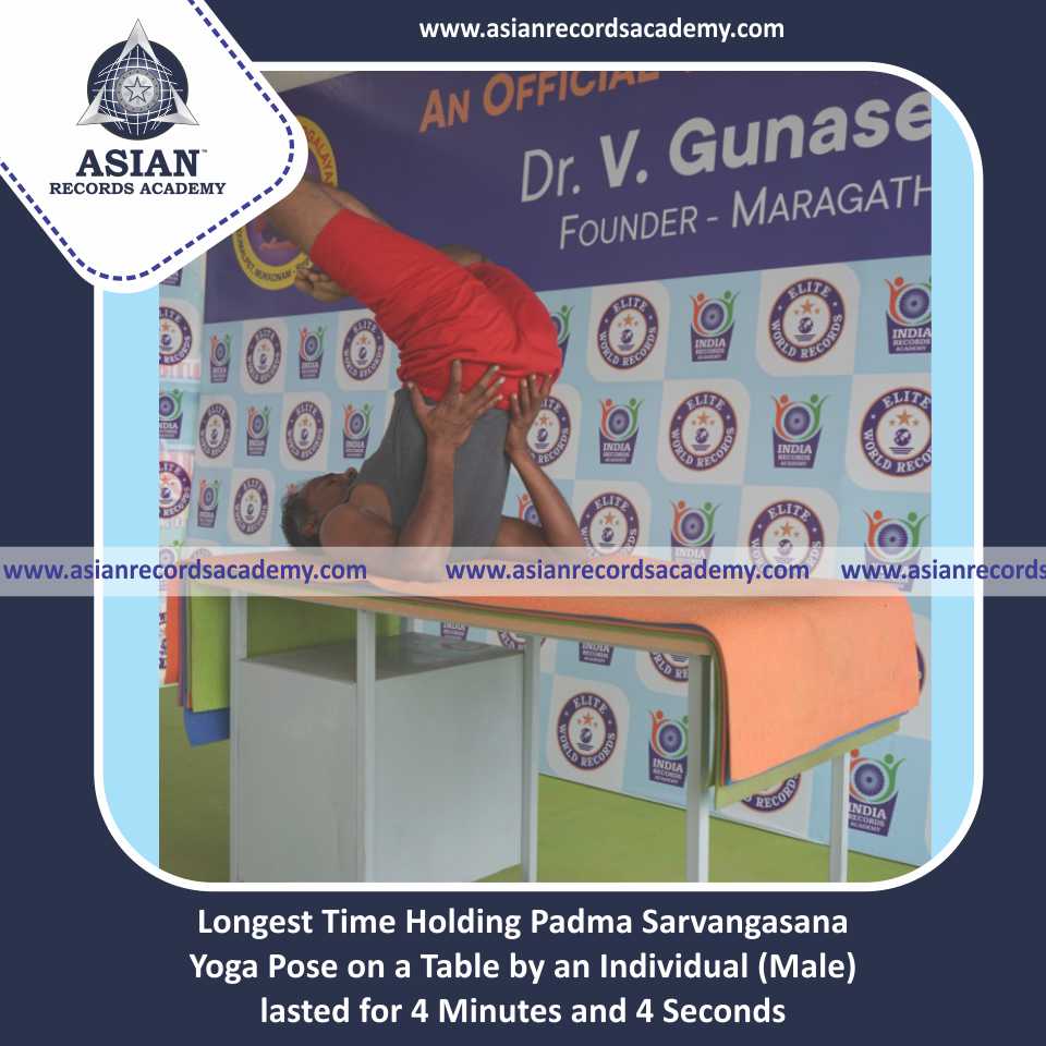 Longest Time Holding Padma Sarvangasana Yoga Pose on a Table by an Individual (Male)