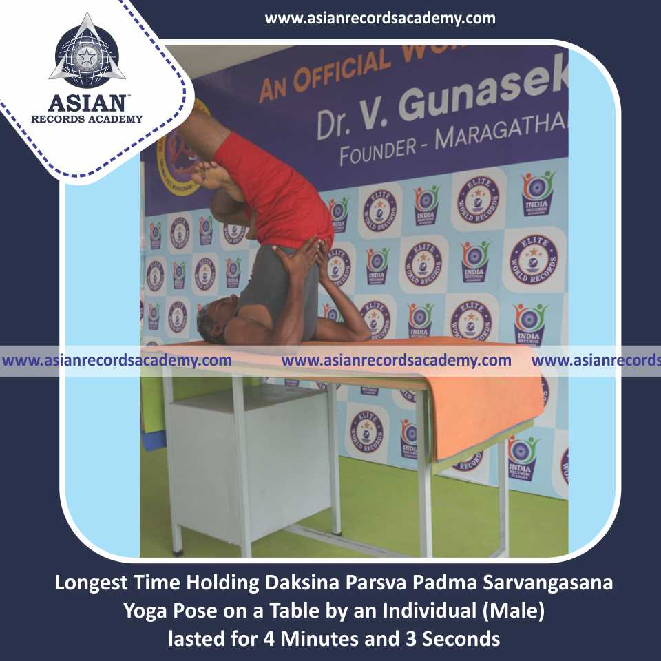 Longest Time Holding Daksina Parsva Padma Sarvangasana Yoga Pose on a Table by an Individual (Male)