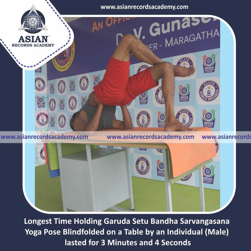 Longest Time Holding Garuda Setu Bandha Sarvangasana Yoga Pose Blindfolded on a Table by an Individual (Male)