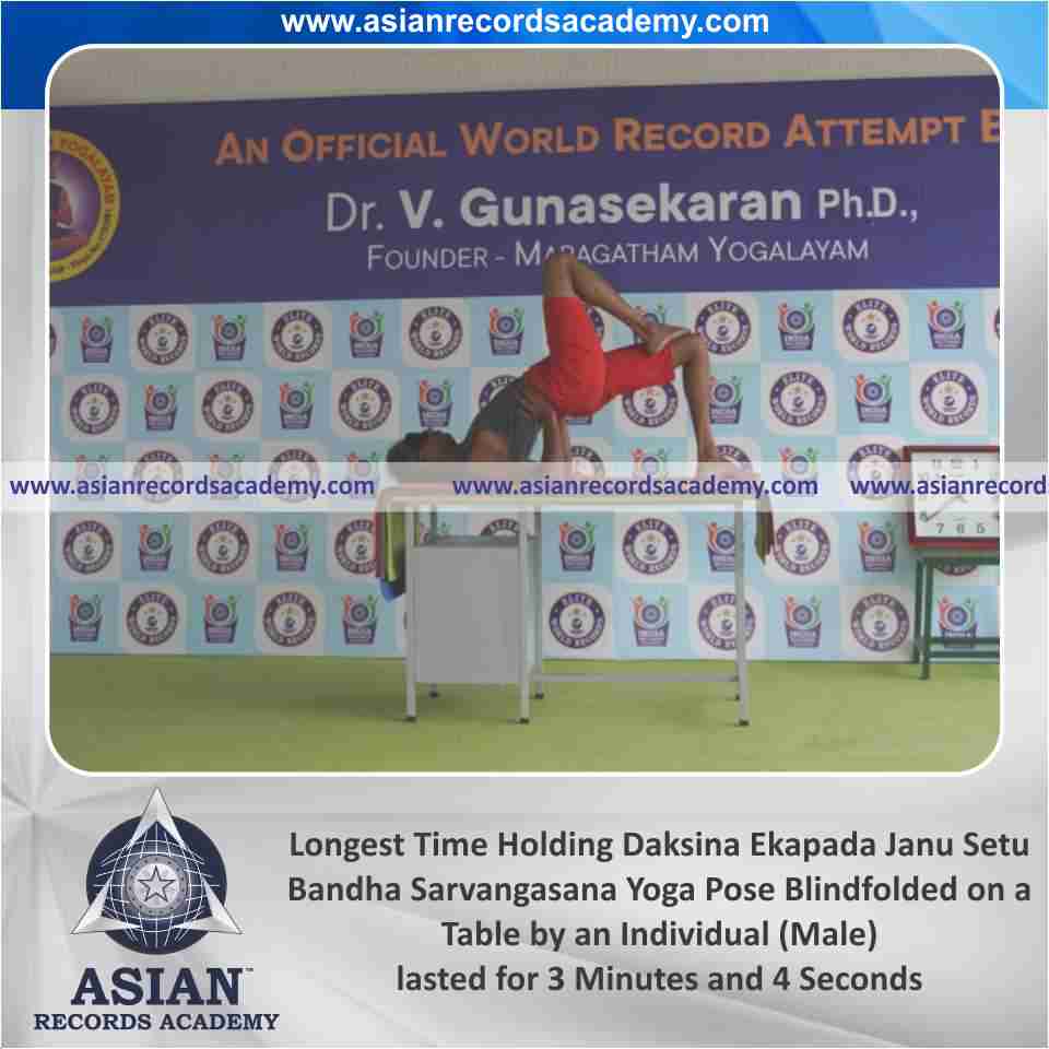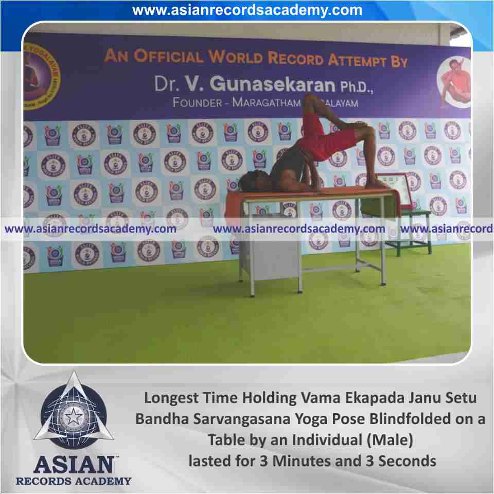 Longest Time Holding Vama Ekapada Janu Setu Bandha Sarvangasana Yoga Pose Blindfolded on a Table by an Individual (Male)