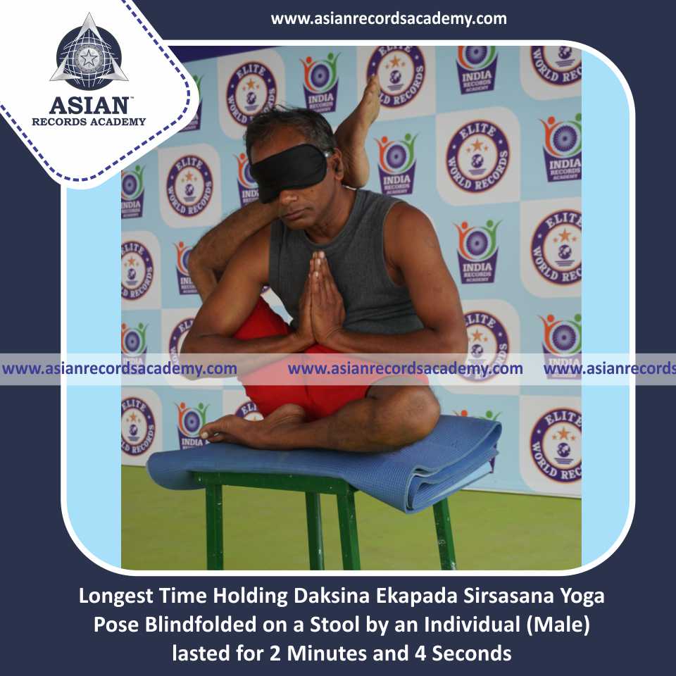 Longest Time Holding Daksina Ekapada Sirsasana Yoga Pose Blindfolded on a Stool by an Individual (Male)