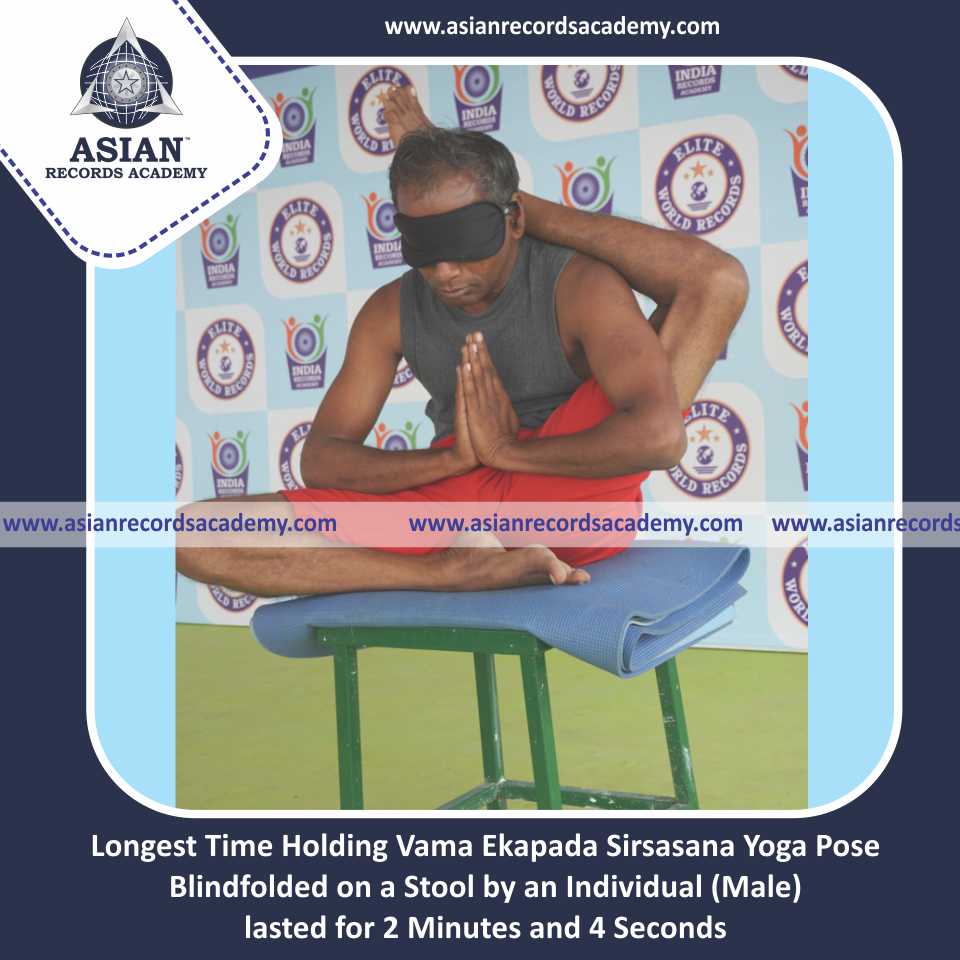 Longest Time Holding Vama Ekapada Sirsasana Yoga Pose Blindfolded on a Stool by an Individual (Male)