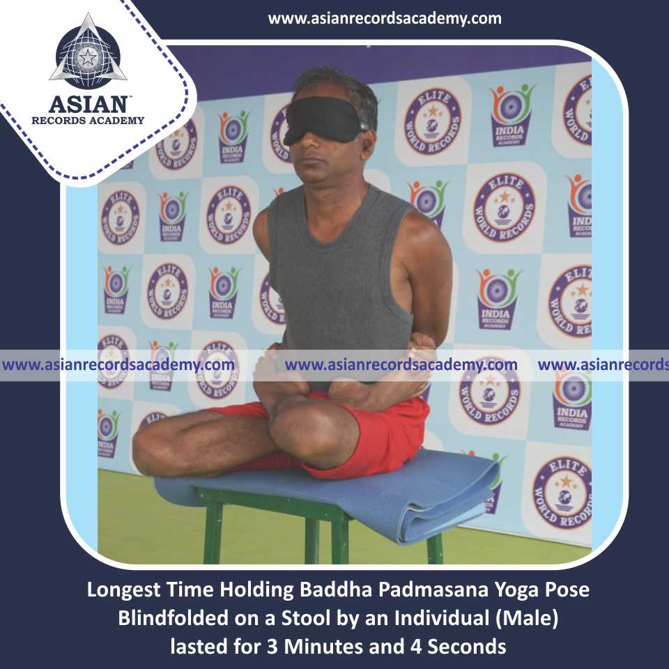 Longest Time Holding Baddha Padmasana Yoga Pose Blindfolded on a Stool by an Individual (Male)