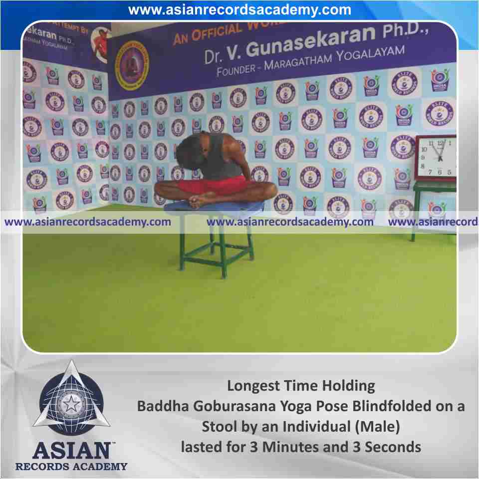Longest Time Holding Baddha Goburasana Yoga Pose Blindfolded on a Stool by an Individual (Male)