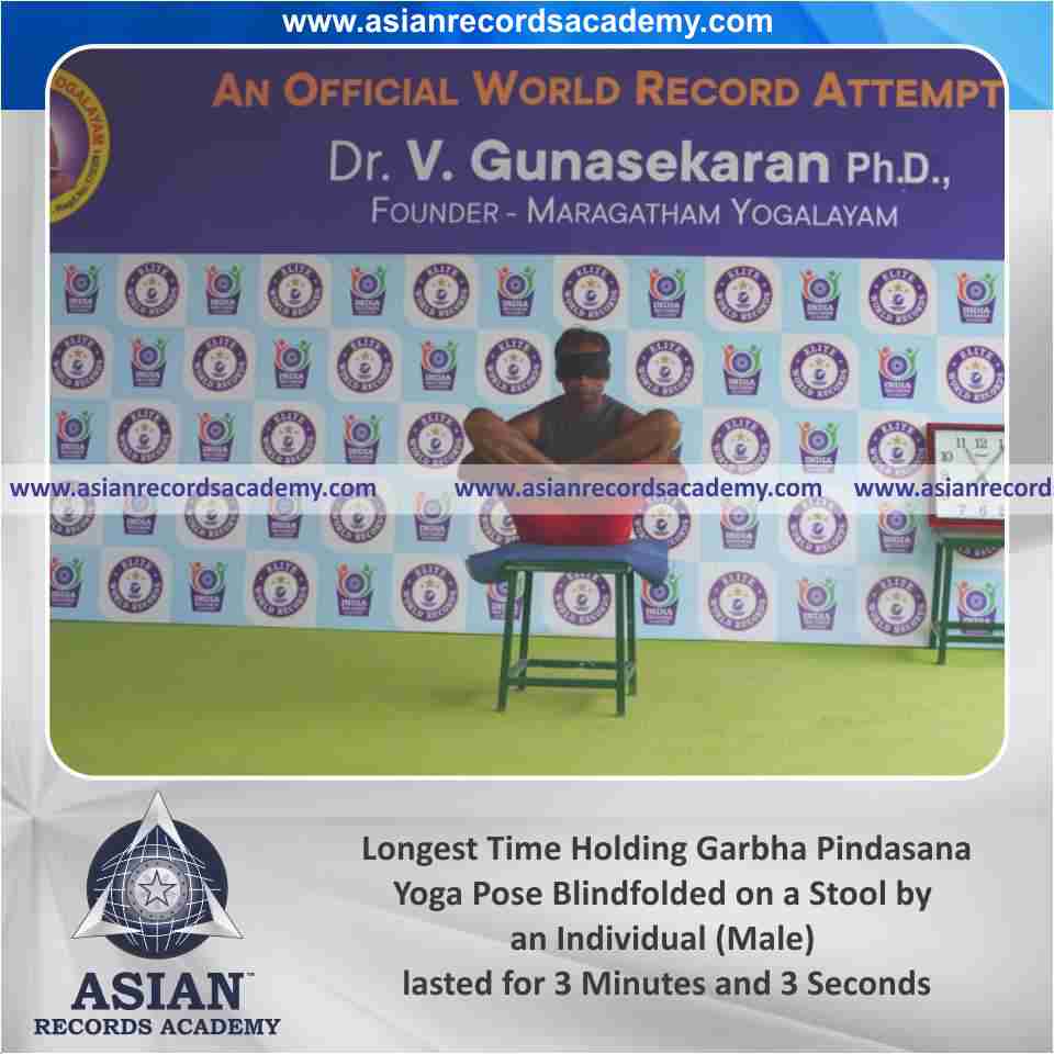 Longest Time Holding Garbha Pindasana Yoga Pose Blindfolded on a Stool by an Individual (Male)