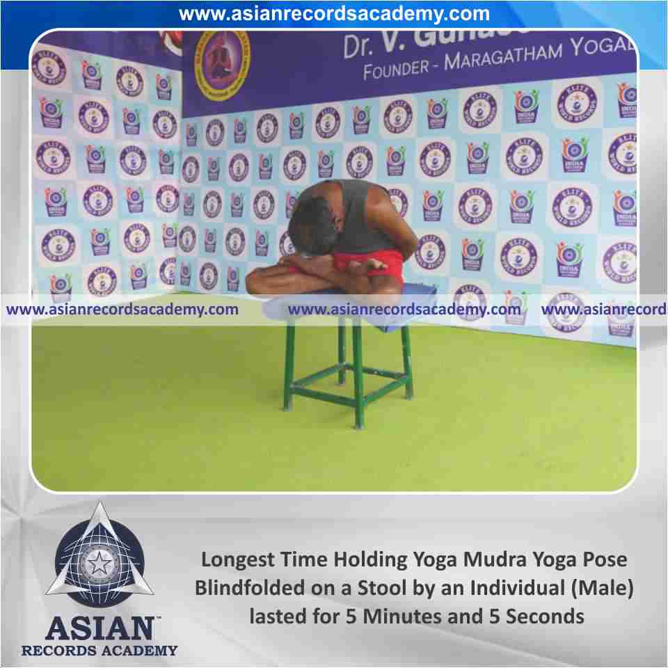 Longest Time Holding Yoga Mudra Yoga Pose Blindfolded on a Stool by an Individual (Male)