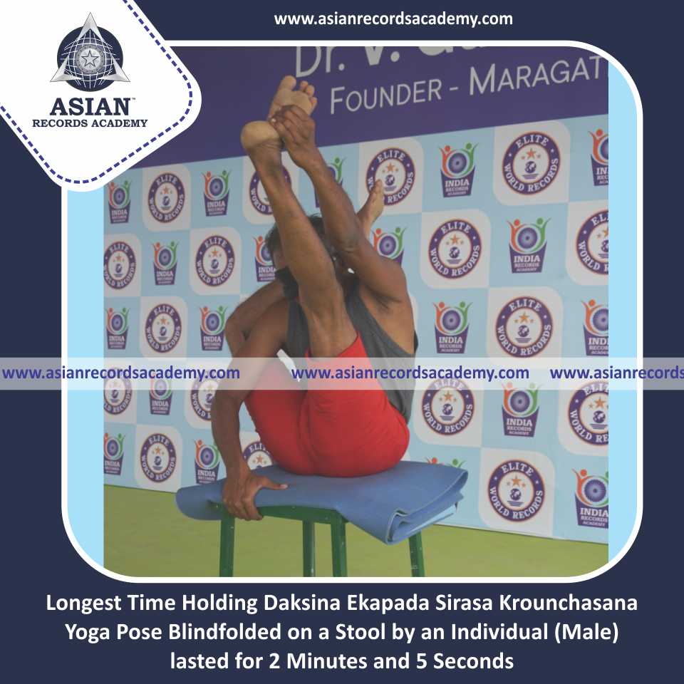 Longest Time Holding Daksina Ekapada Sirasa Krounchasana Yoga Pose Blindfolded on a Stool by an Individual (Male)