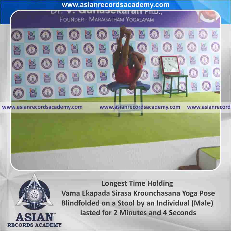 Longest Time Holding Vama Ekapada Sirasa Krounchasana Yoga Pose Blindfolded on a Stool by an Individual (Male)