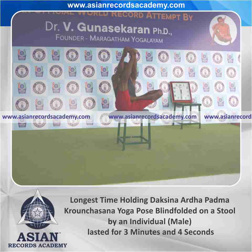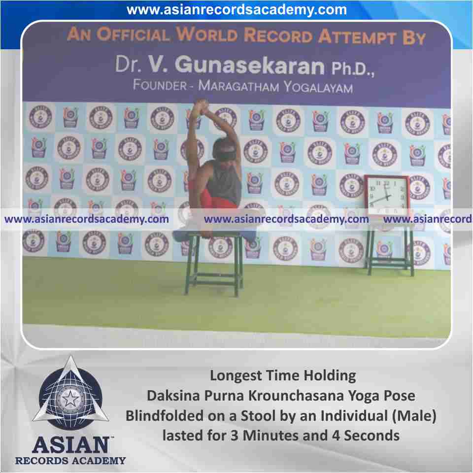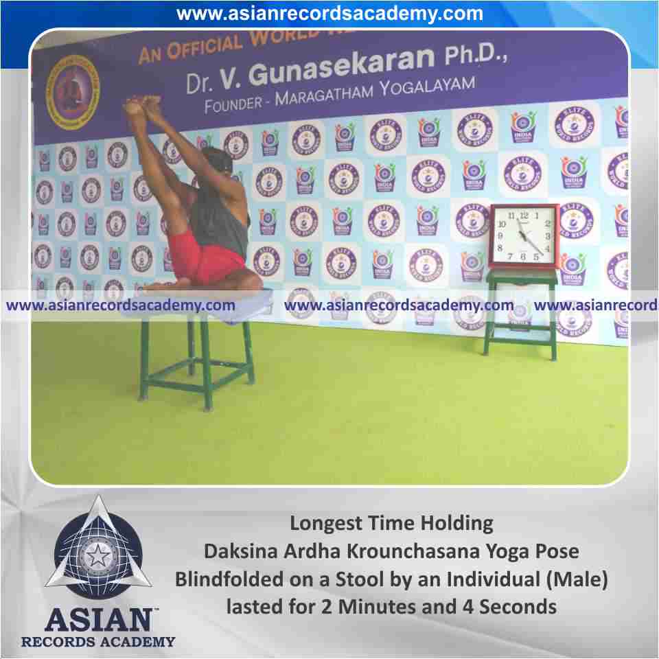 Longest Time Holding Daksina Ardha Padma Krounchasana Yoga Pose Blindfolded on a Stool by an Individual (Male)