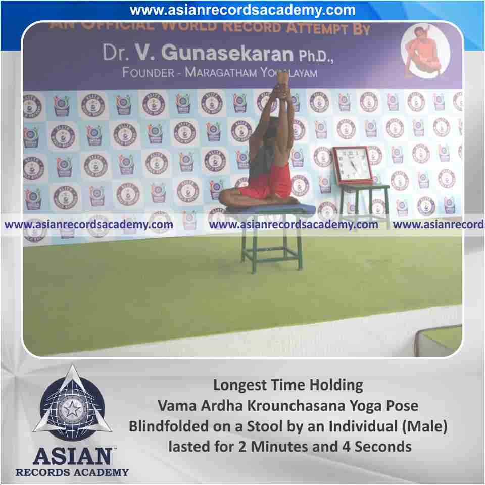 Longest Time Holding Vama Ardha Krounchasana Yoga Pose Blindfolded on a Stool by an Individual (Male)