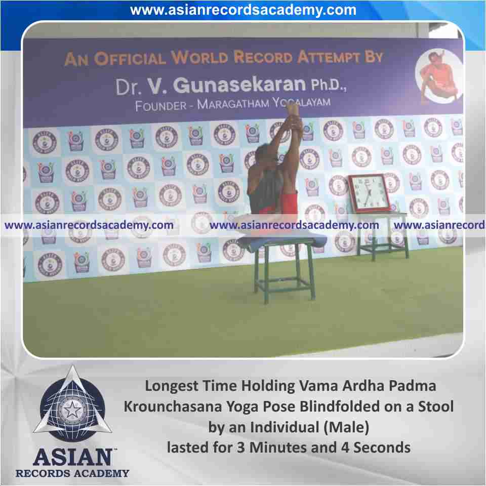 Longest Time Holding Vama Ardha Padma Krounchasana Yoga Pose Blindfolded on a Stool by an Individual (Male)
