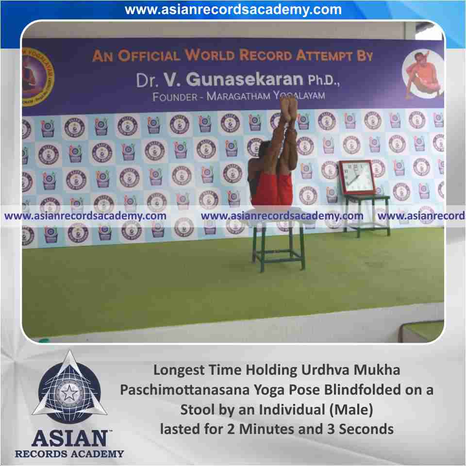Longest Time Holding Urdhva Mukha Paschimottanasana Yoga Pose Blindfolded on a Stool by an Individual (Male)
