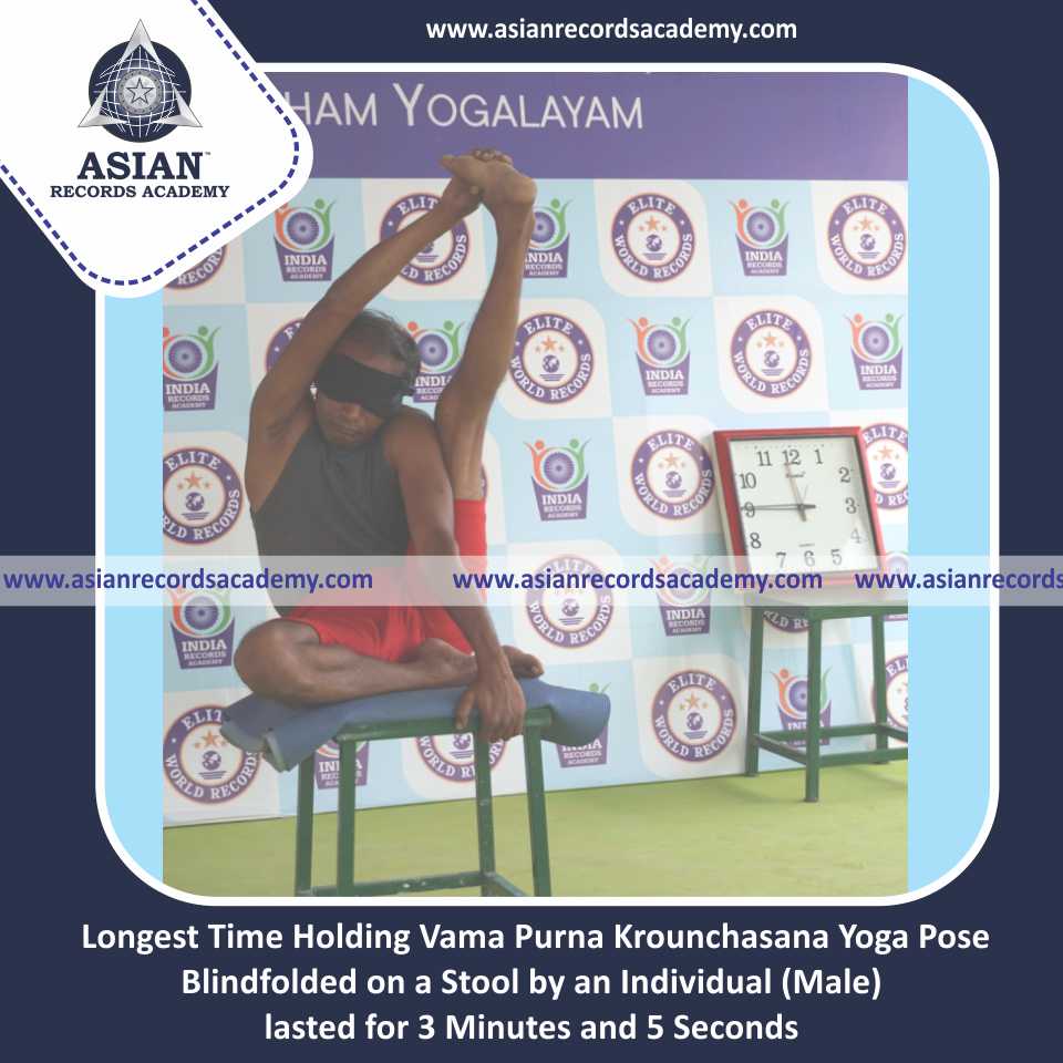 Longest Time Holding Vama Purna Krounchasana Yoga Pose Blindfolded on a Stool by an Individual (Male)