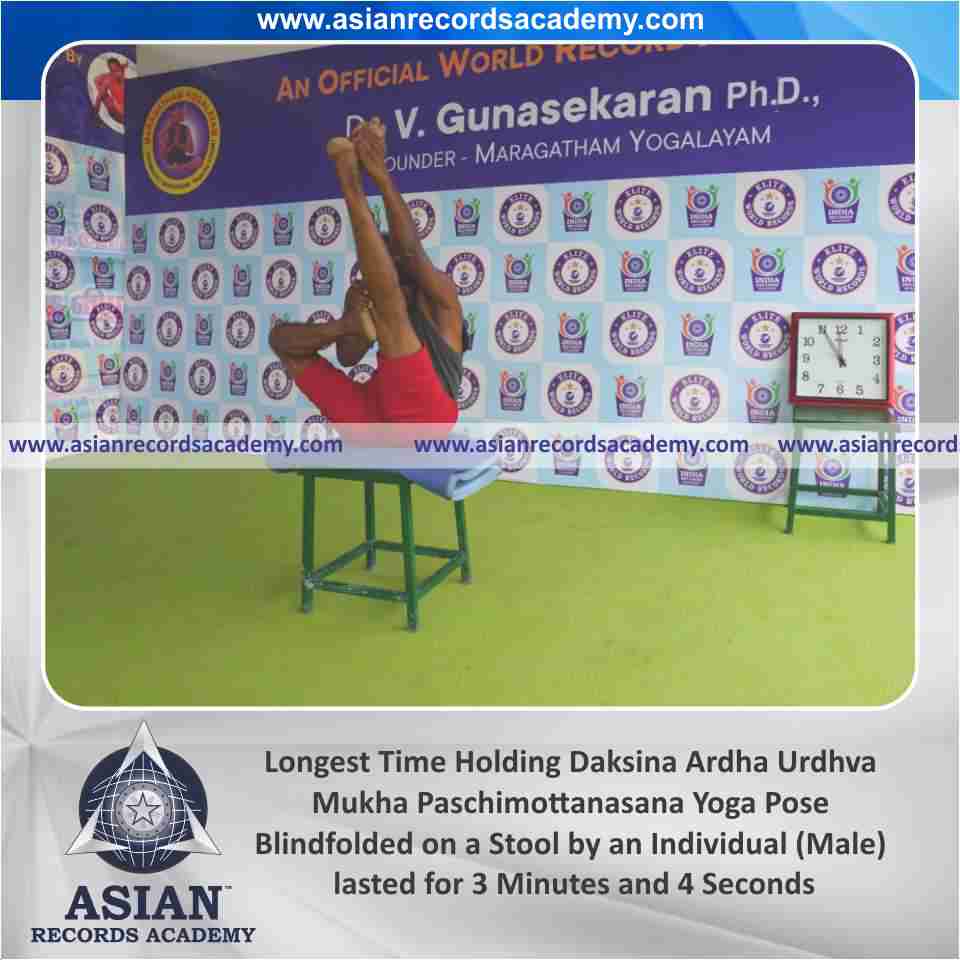 Longest Time Holding Daksina Ardha Urdhva Mukha Paschimottanasana Yoga Pose Blindfolded on a Stool by an Individual (Male)