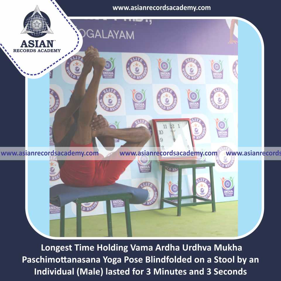 Longest Time Holding Vama Ardha Urdhva Mukha Paschimottanasana Yoga Pose Blindfolded on a Stool by an Individual (Male)