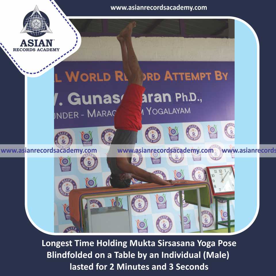 Longest Time Holding Mukta Sirsasana Yoga Pose Blindfolded on a Table by an Individual (Male)