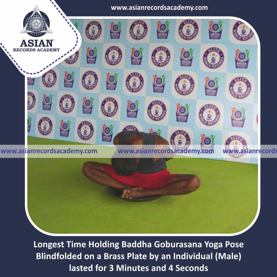 Longest Time Holding Baddha Goburasana Yoga Pose Blindfolded on a Brass Plate by an Individual (Male)