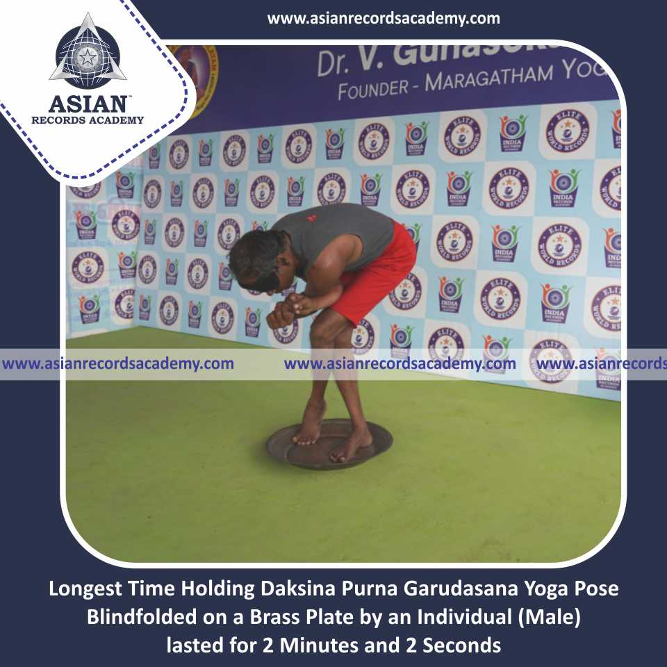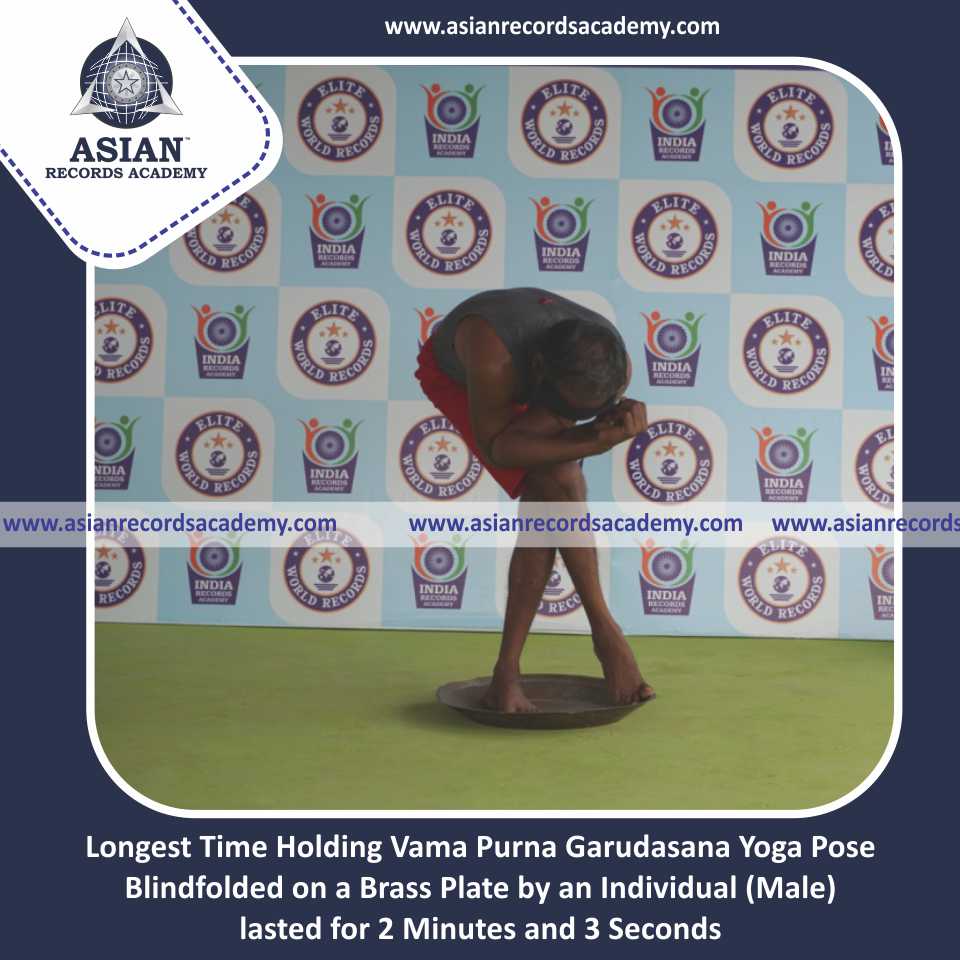 Longest Time Holding Vama Purna Garudasana Yoga Pose Blindfolded on a Brass Plate by an Individual (Male)