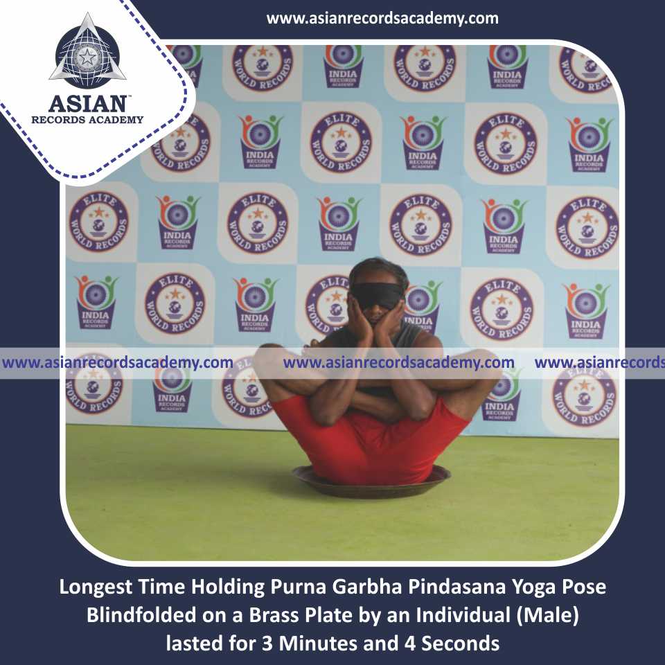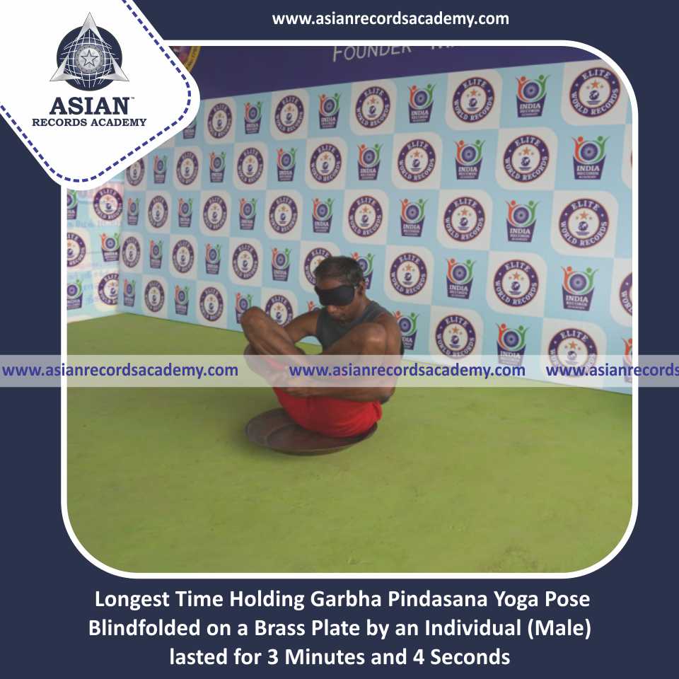 Longest Time Holding Garbha Pindasana Yoga Pose Blindfolded on a Brass Plate by an Individual (Male)