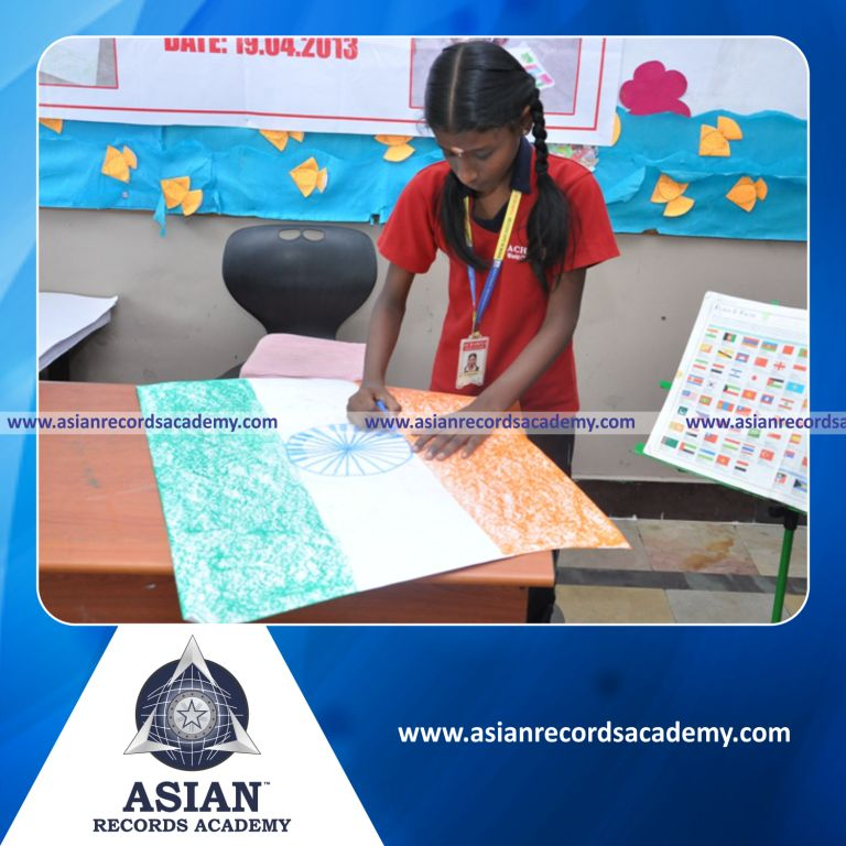 Highest Number of National Flags of Different Countries Drawn by a Minor (Female) in 10 Hours