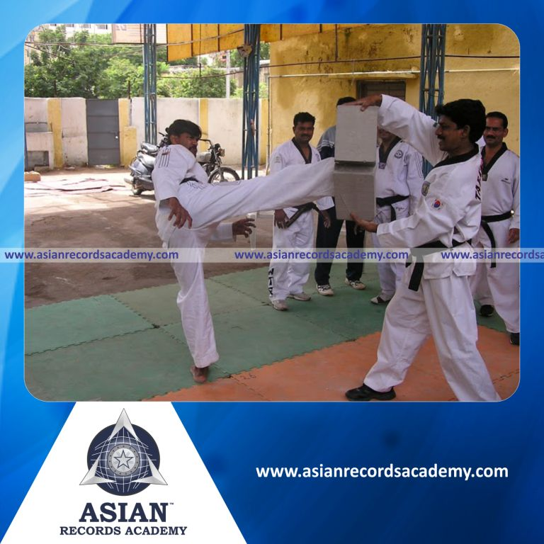 Highest Number of Concrete Blocks Broken using Round House Kick Method by an Individual (Male) in 1 Minute