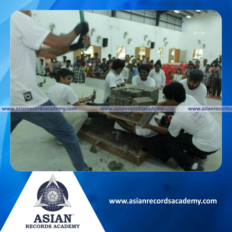 Highest Number of Concrete Blocks Broken on his Body while Lying on Bed of Nails by an Individual (Male)