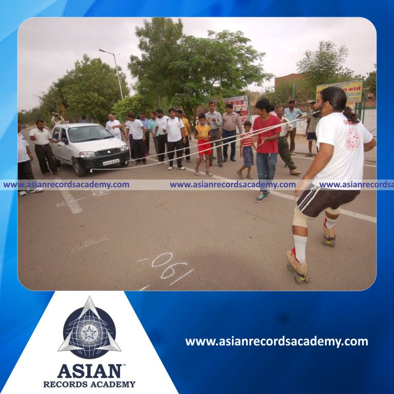 Longest Distance Pulling a Car with the Beard while Performing Roller Skates Simultaneously by an Individual (Male)