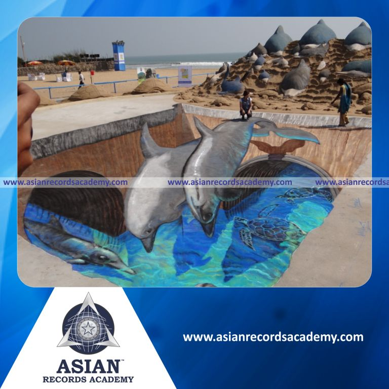Largest Interactive 3D Chalk Paintings made with Sand by a Team