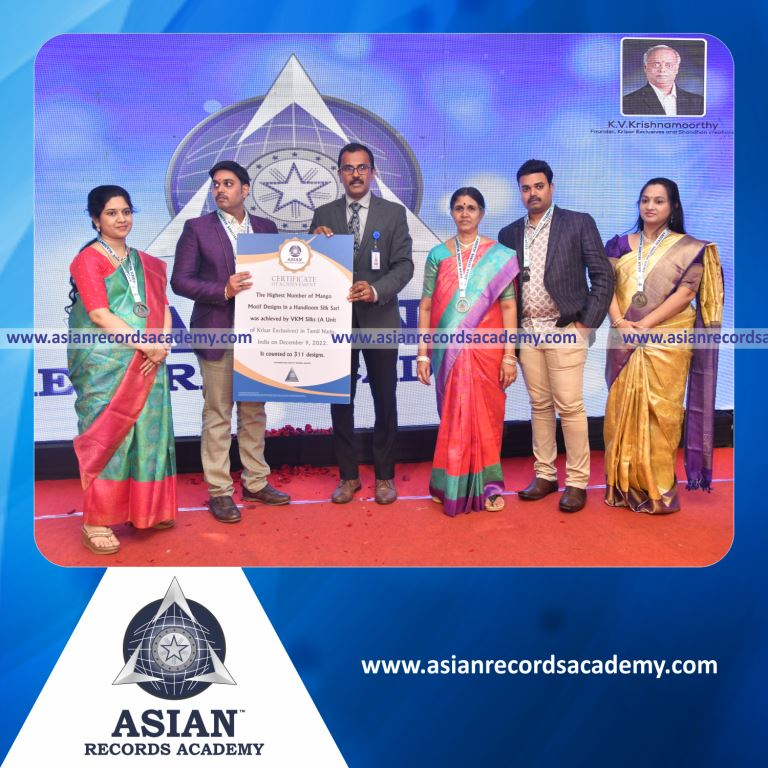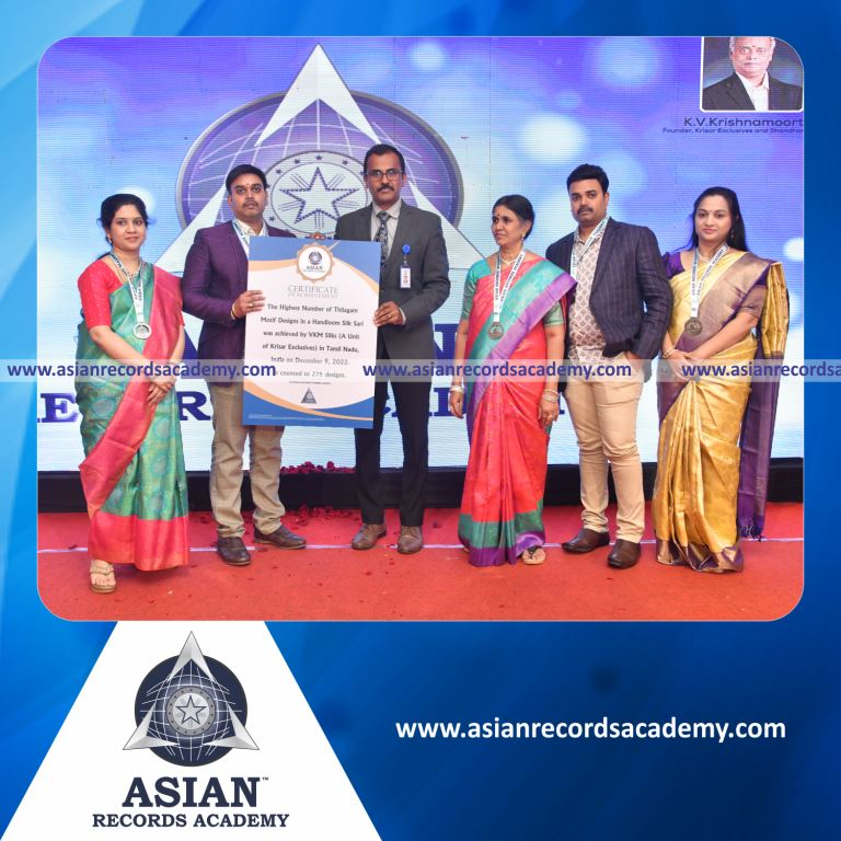 Highest Number of Thilagam Motif Designs in a Handloom Silk Sari