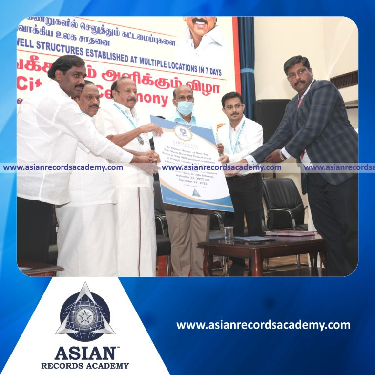 Highest Number of Roof-Top Rain Water Harvesting Ground Water Recharge Ring Well Structures established at Multiple Locations in 7 Days