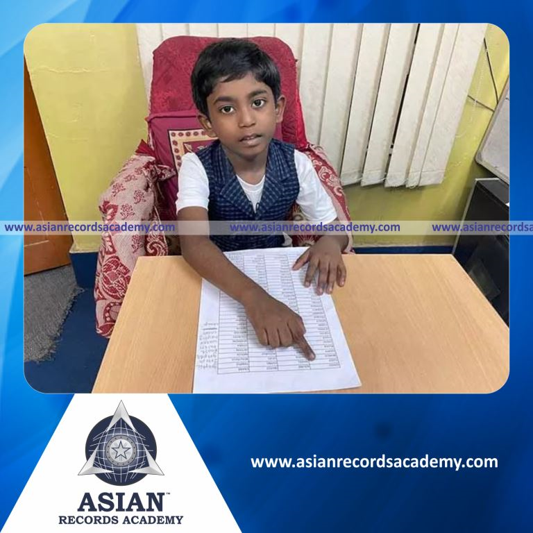 Highest Number of Random Double-Digit Table Recited in One Minute by an Individual (Minor-Male)
